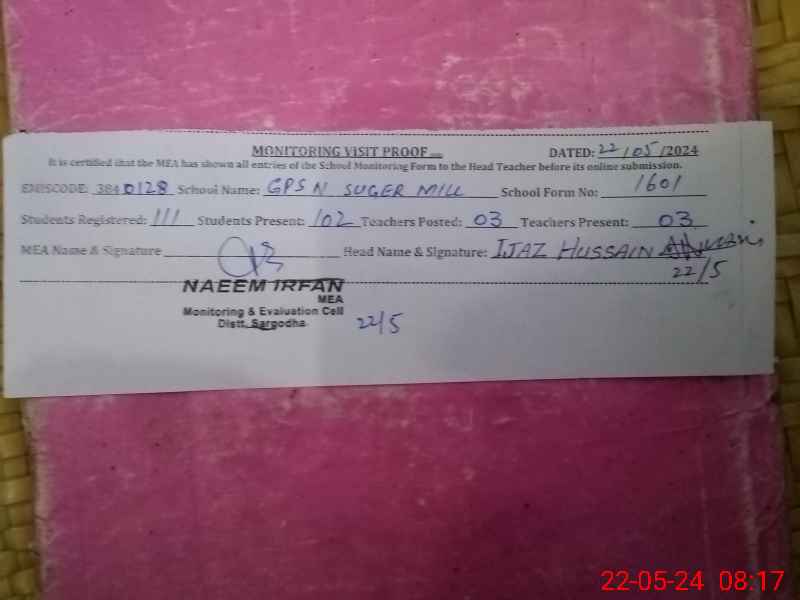 | EMIS Code: 38410128 | Name of School: GPS NOON SUGAR MILL SHAH TOWN | |||