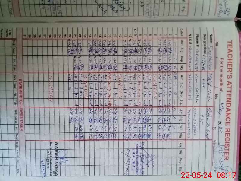 | CNIC | Full Name | Designation | R/C | Absence During Last Calender Month |