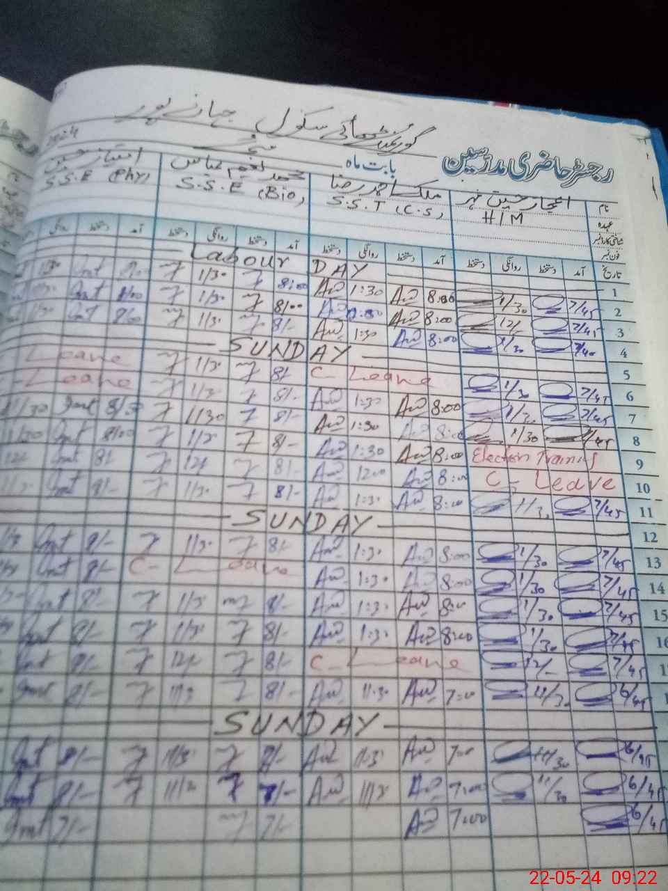 | CNIC | Full Name | Designation | R/C | Absence During Last Calender Month |