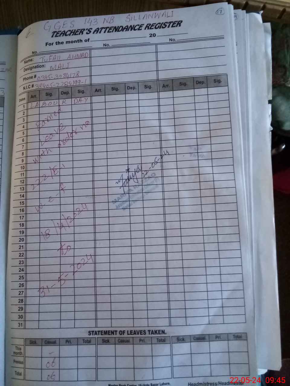 | Name: Sa**** Na**** Designation: (School Headmaster's/Headmistress's) SST Sci Phone/Cell Number: 03**** |