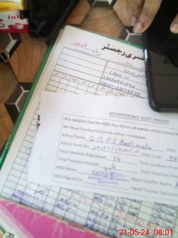 | EMIS Code: 38210518 | Name of School: GGPS BADLI WALA | |||