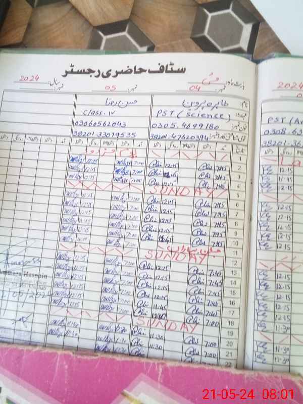 | Name: Ro**** Ya**** Designation: (School Headmaster's/Headmistress's) EST(G) Phone/Cell Number: 03**** |