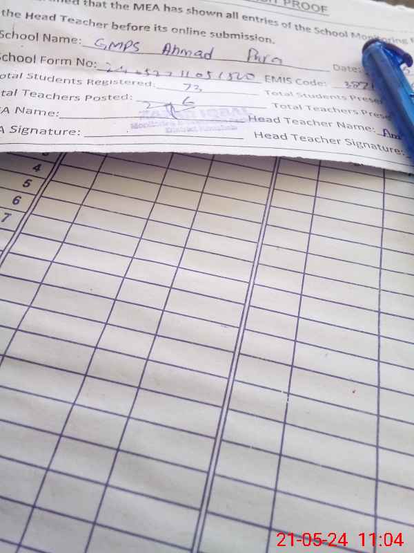 | EMIS Code: 38210516 | Name of School: GMPS AHMAD PURA | |||