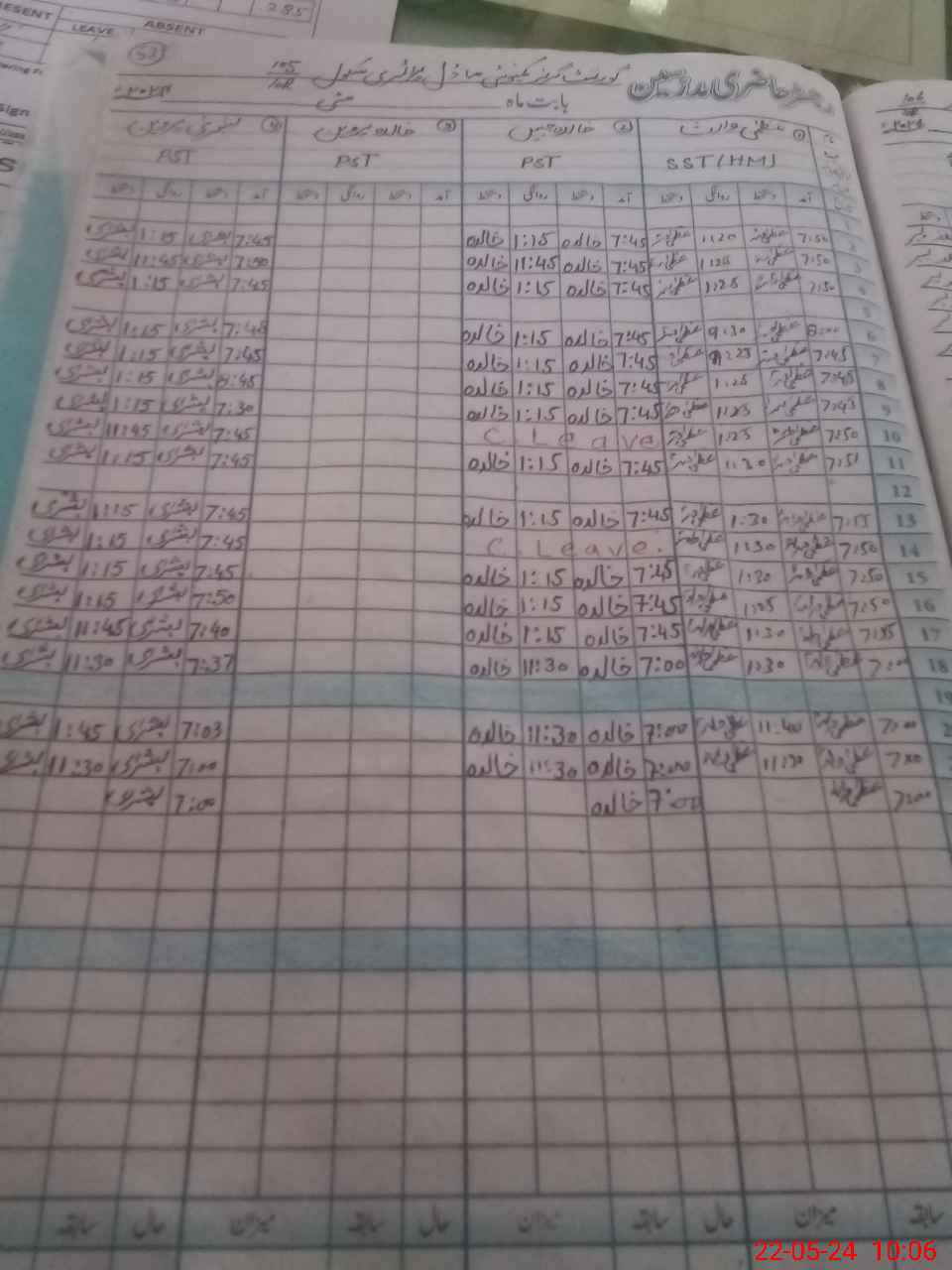 | CNIC | Full Name | Designation | R/C | Absence During Last Calender Month |