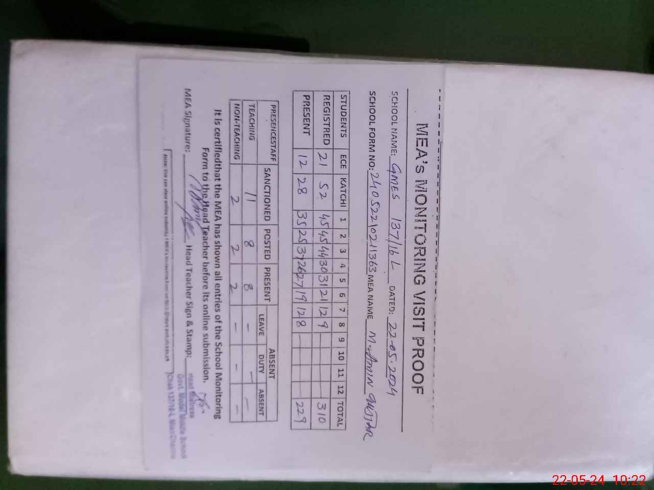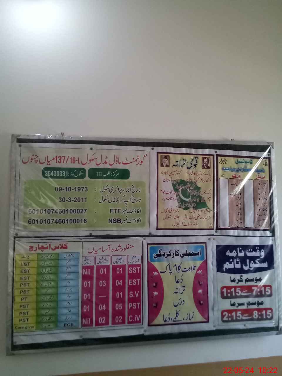 | EMIS Code: 36430331 | Name of School: GMES 137/16-L, MIAN CHANNU | |||