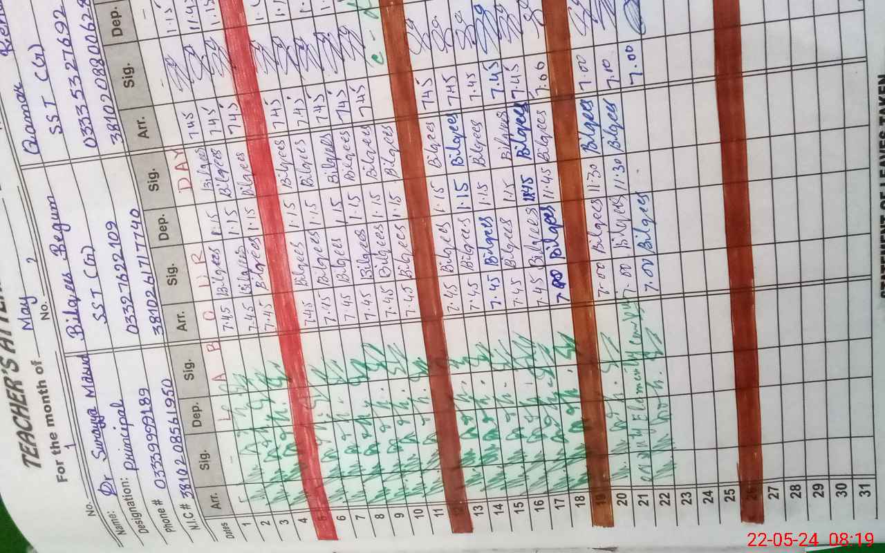 | CNIC | Full Name | Designation | R/C | Absence During Last Calender Month |