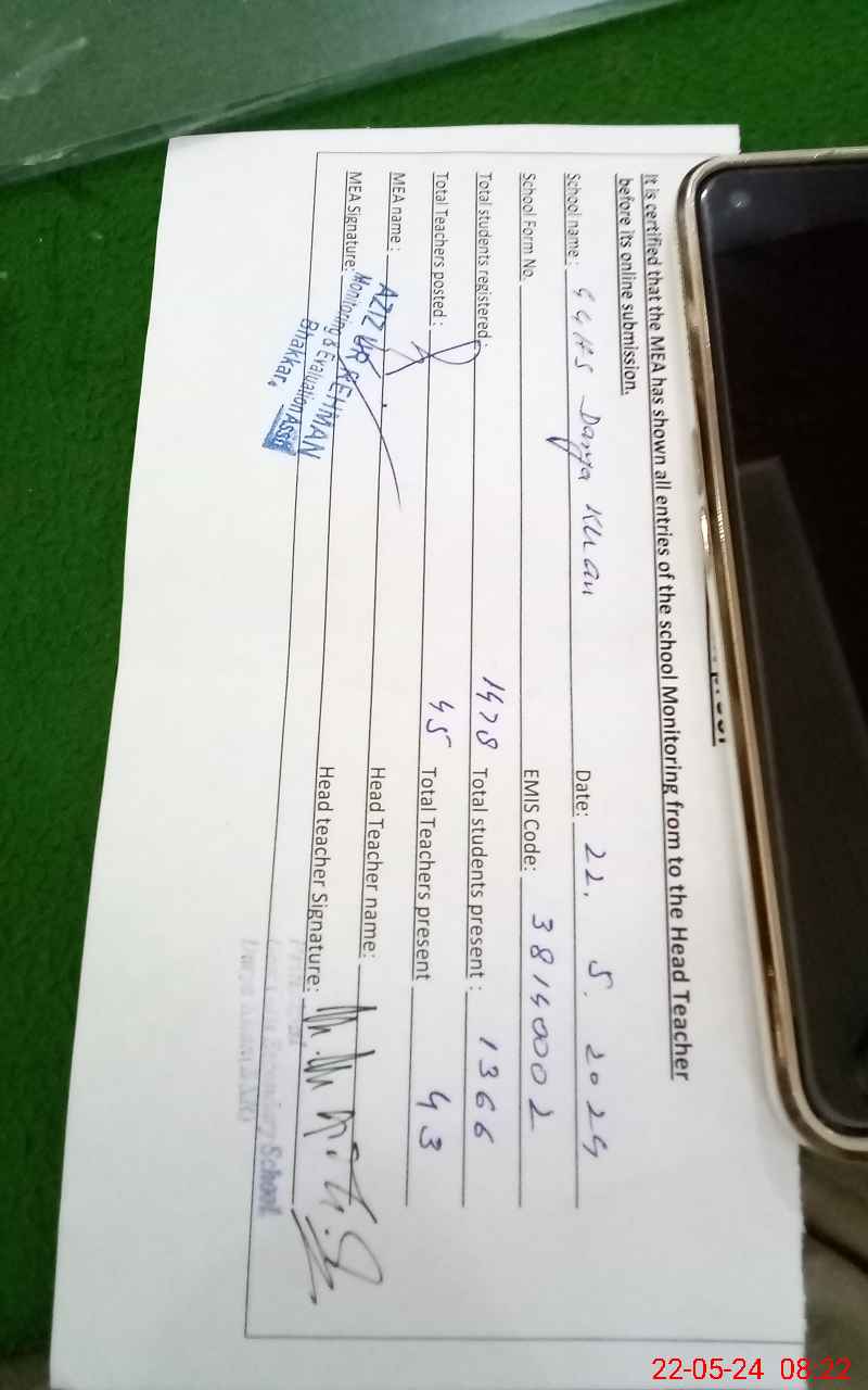 | Certified that this School was Inspected by the Undersigned MEA/DMO Today and the Information Stated Above is as Per Record. | |||||