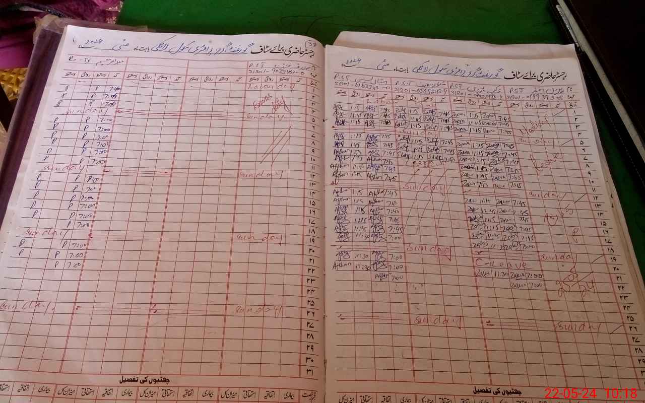 | CNIC | Full Name | Designation | R/C | Absence During Last Calender Month |