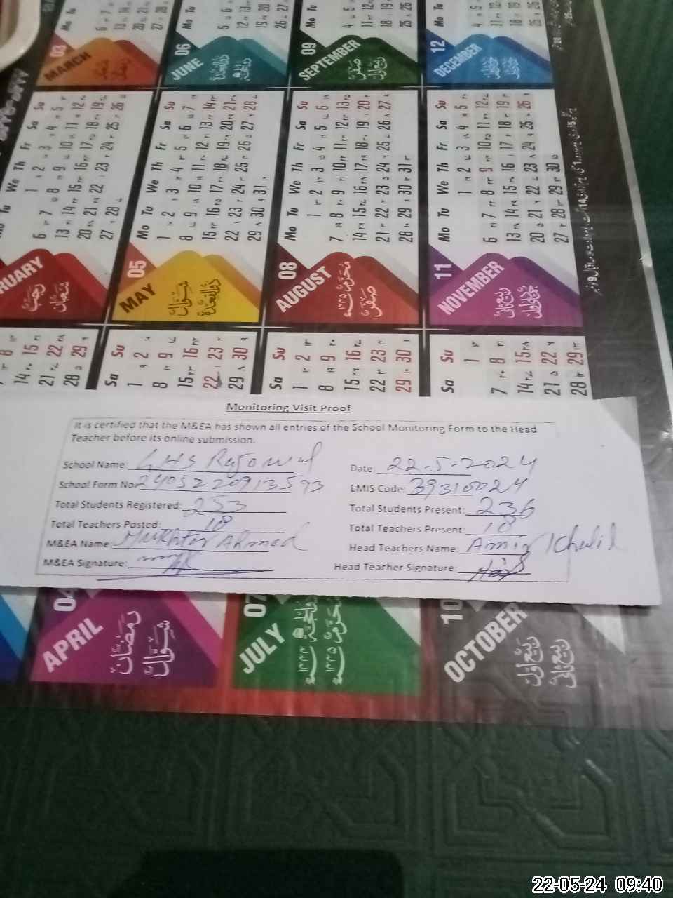 | Certified that this School was Inspected by the Undersigned MEA/DMO Today and the Information Stated Above is as Per Record. | |||||