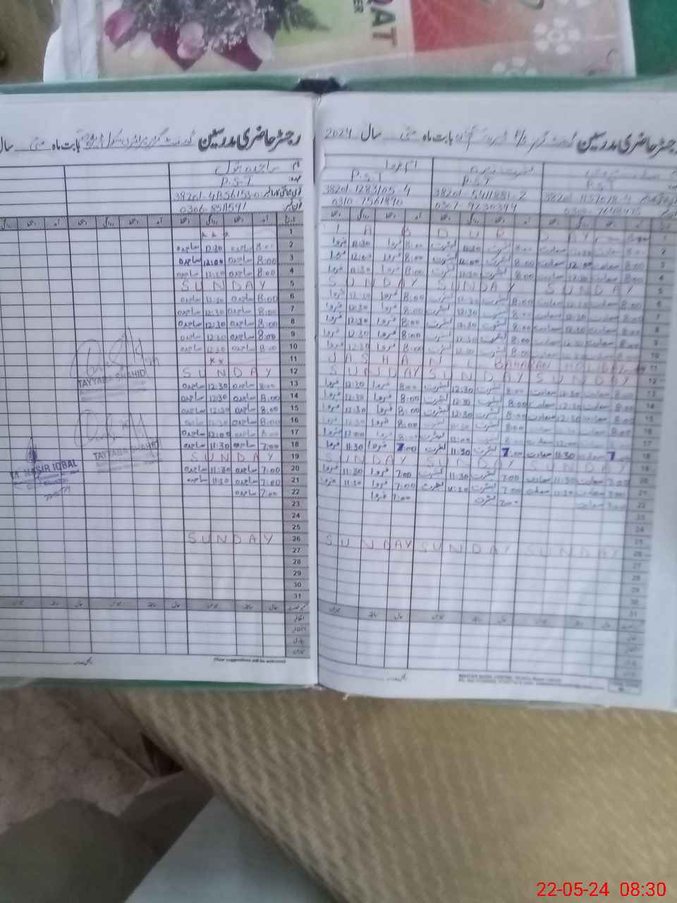 | CNIC | Full Name | Designation | R/C | Absence During Last Calender Month |