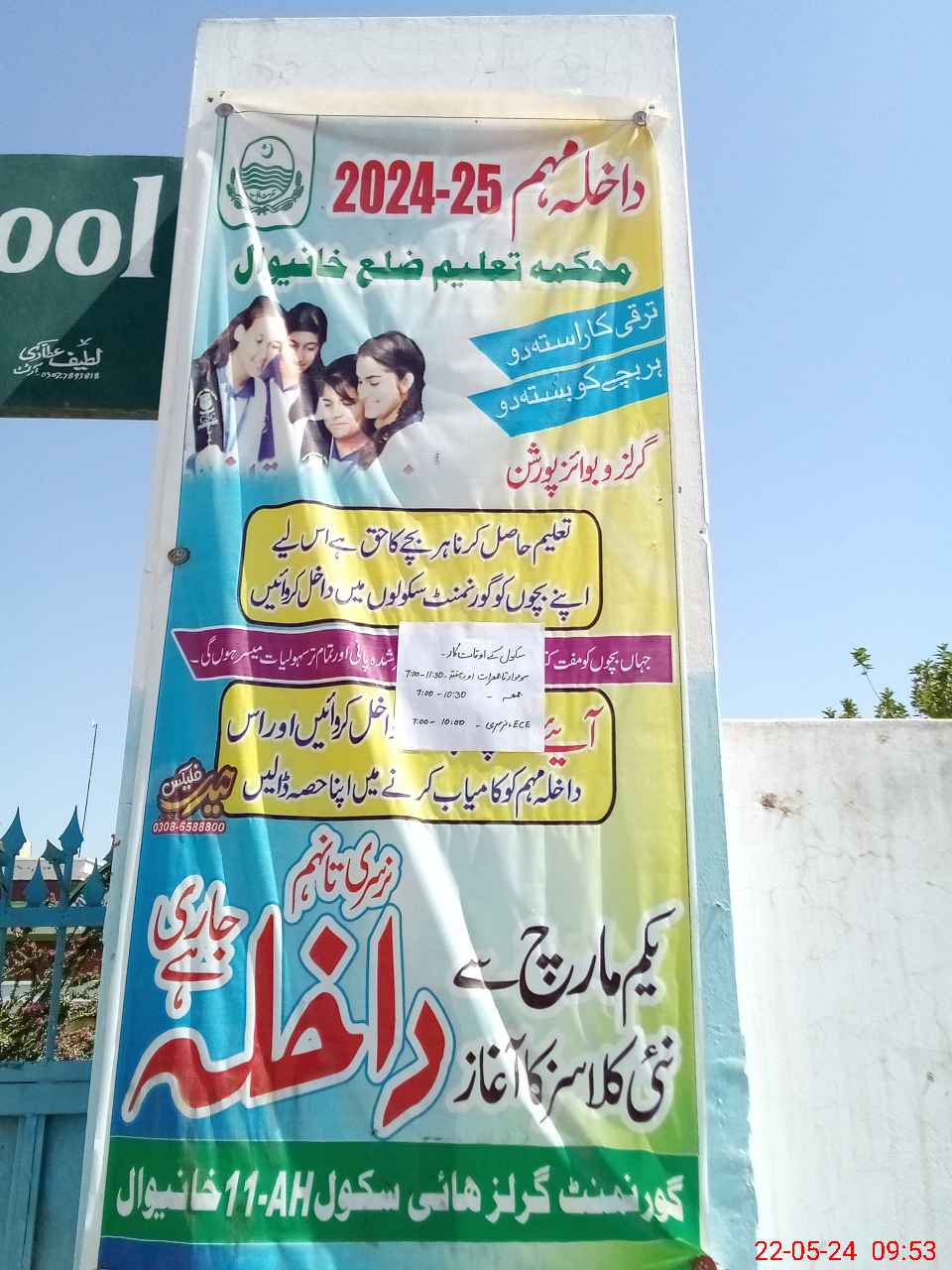 | EMIS Code: 36420398 | Name of School: GGHS CMS 11/AH KHANEWAL | |||