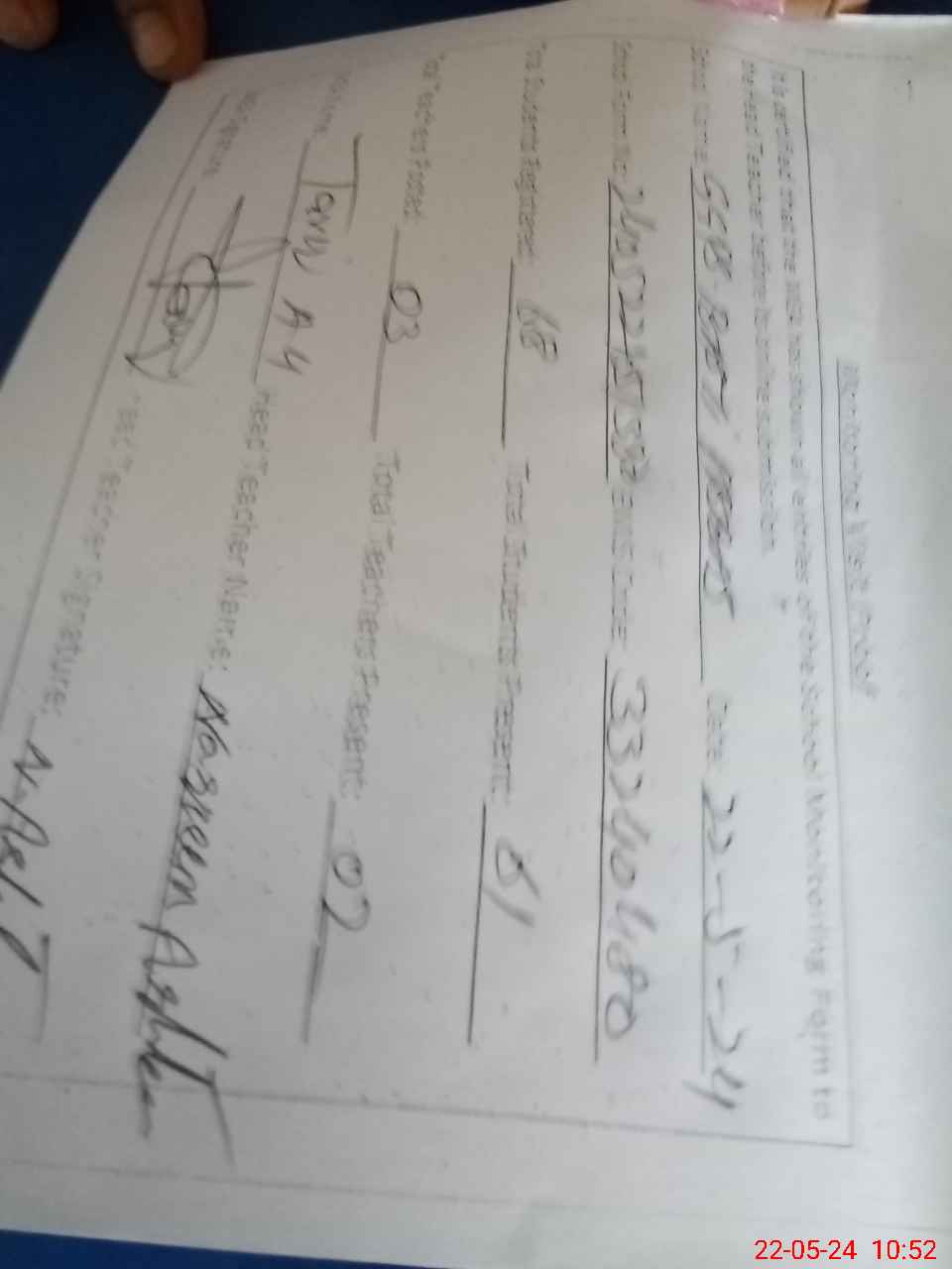 | Name: NA**** AK**** Designation: (School Headmaster's/Headmistress's) PST Phone/Cell Number: 03**** |