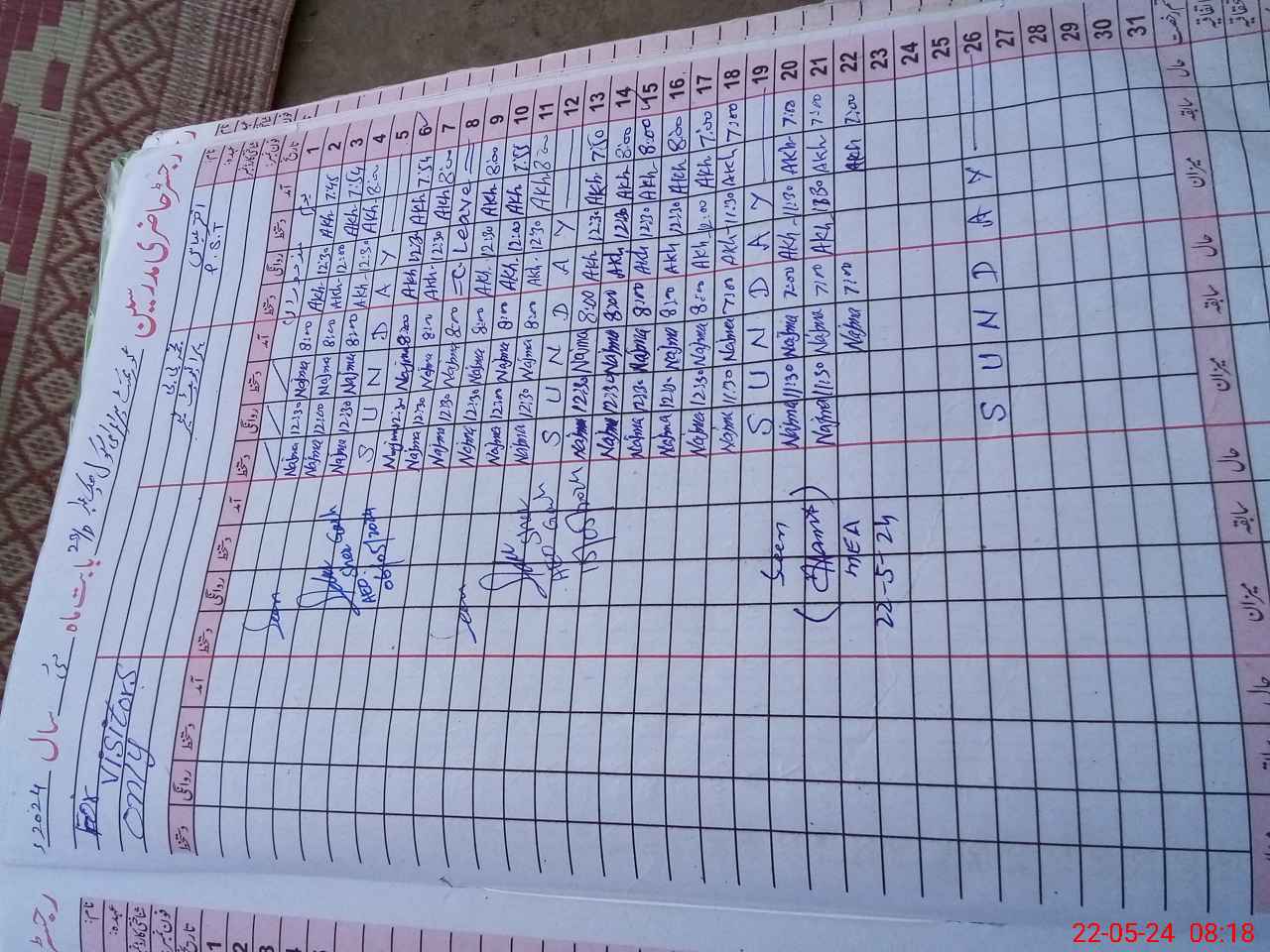 | CNIC | Full Name | Designation | R/C | Absence During Last Calender Month |