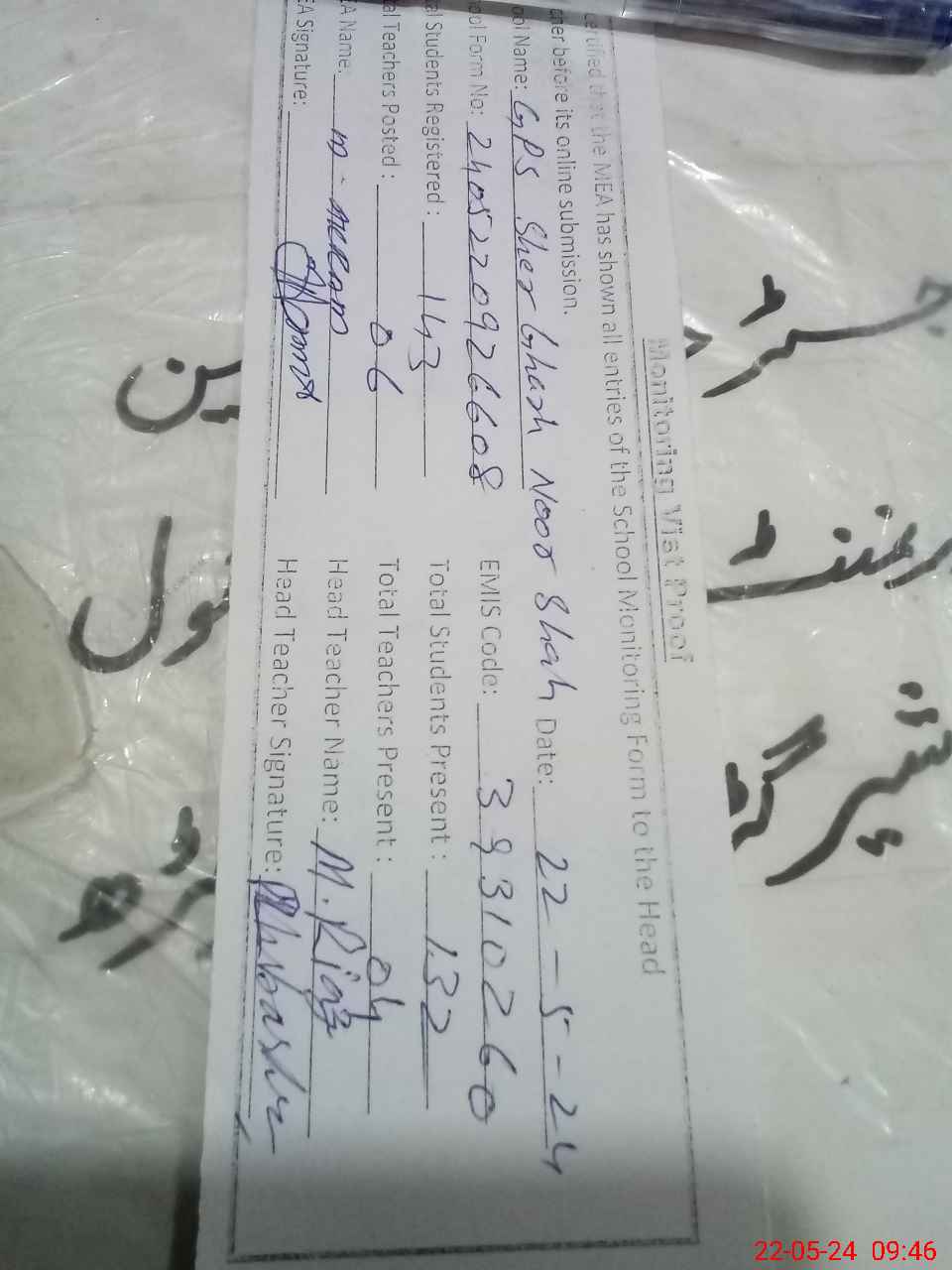 | Attendance Register | Head Teacher | MEA with School | Visit Proof |