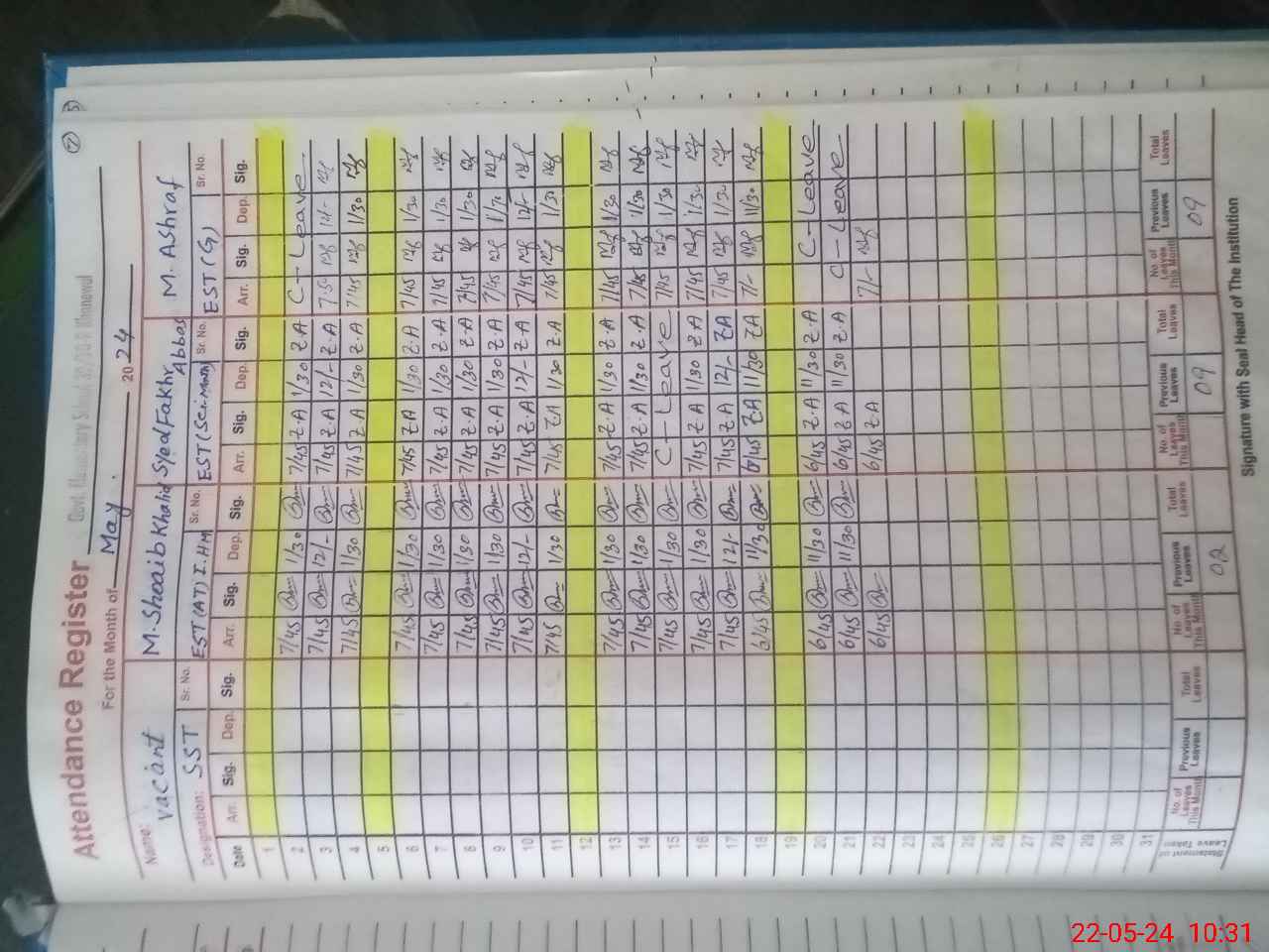 | 36**** | Ab**** Ha**** | ESE | Contract | 0 | 0 | 0 | 0 | 0 | 0 | 0 | 0 | 0 | Exam Duty |