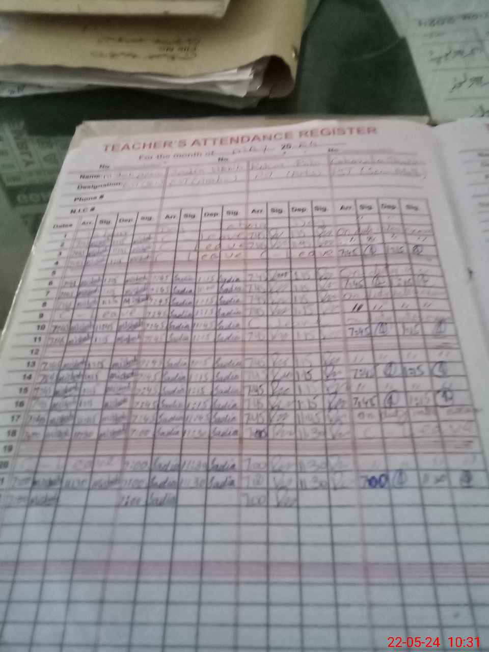 | CNIC | Full Name | Designation | R/C | Absence During Last Calender Month |