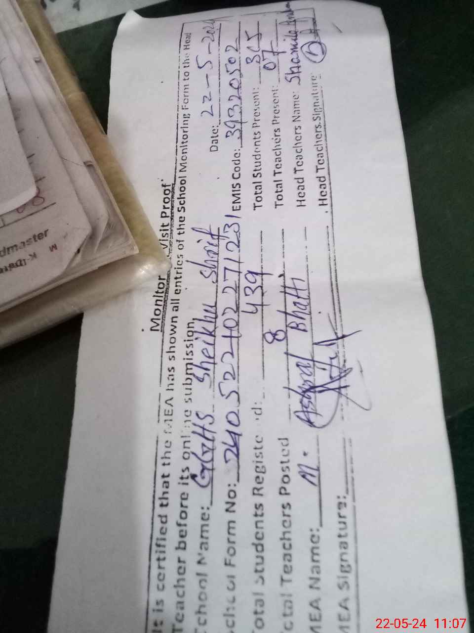| Name: Sh**** An**** Designation: (School Headmaster's/Headmistress's) SST Phone/Cell Number: 03**** |
