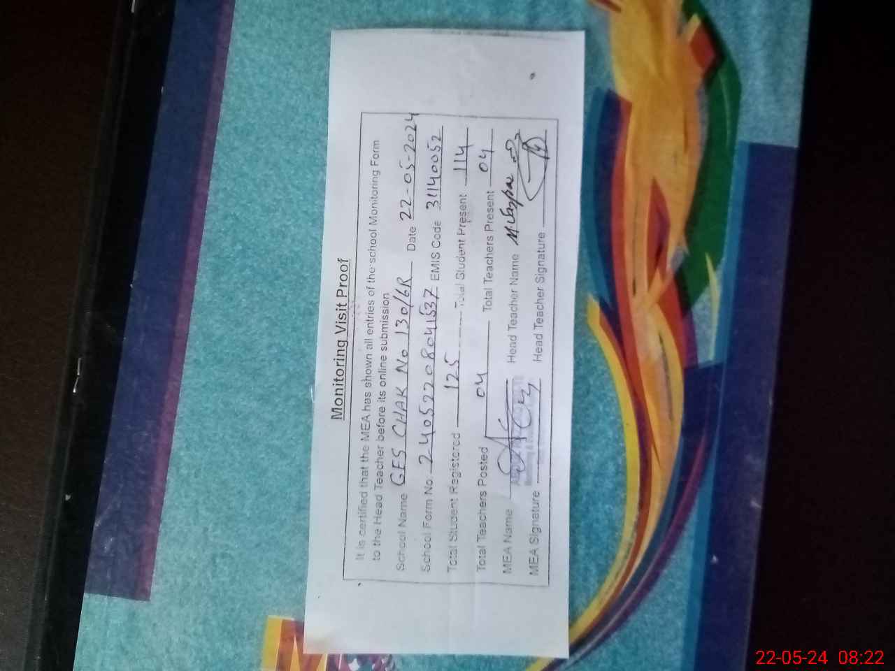 | EMIS Code: 31140052 | Name of School: GES CHAK NO 130/6-R | |||