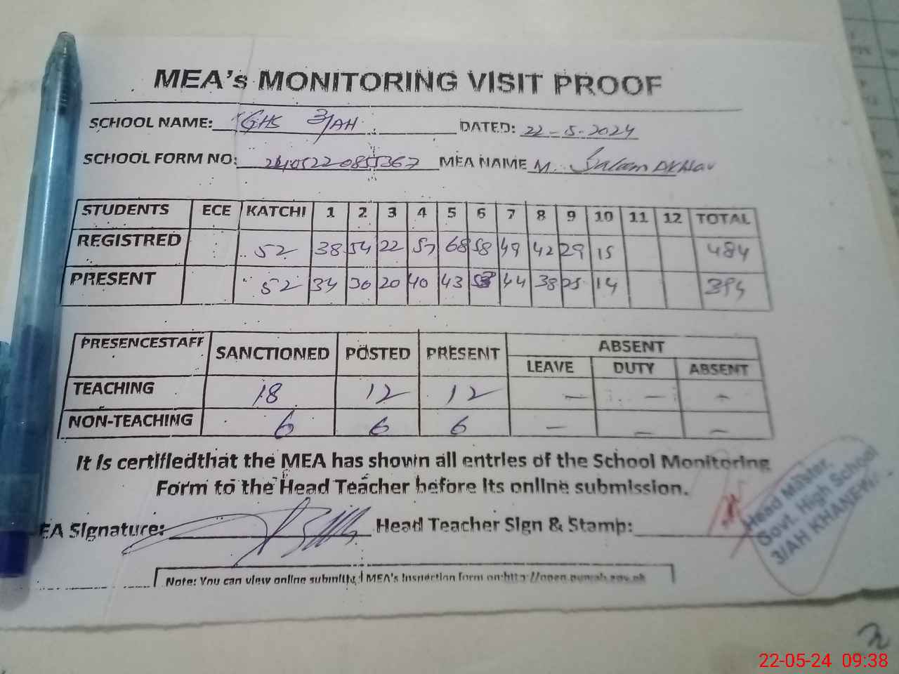 | EMIS Code: 36420011 | Name of School: GHS 3/AH, KHANEWAL | |||