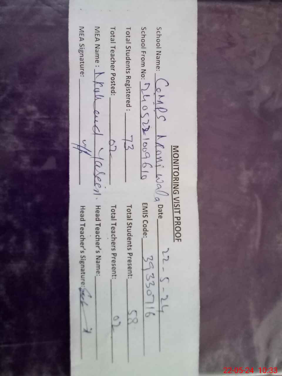 | EMIS Code: 39330716 | Name of School: GMPS MONI WALA | |||