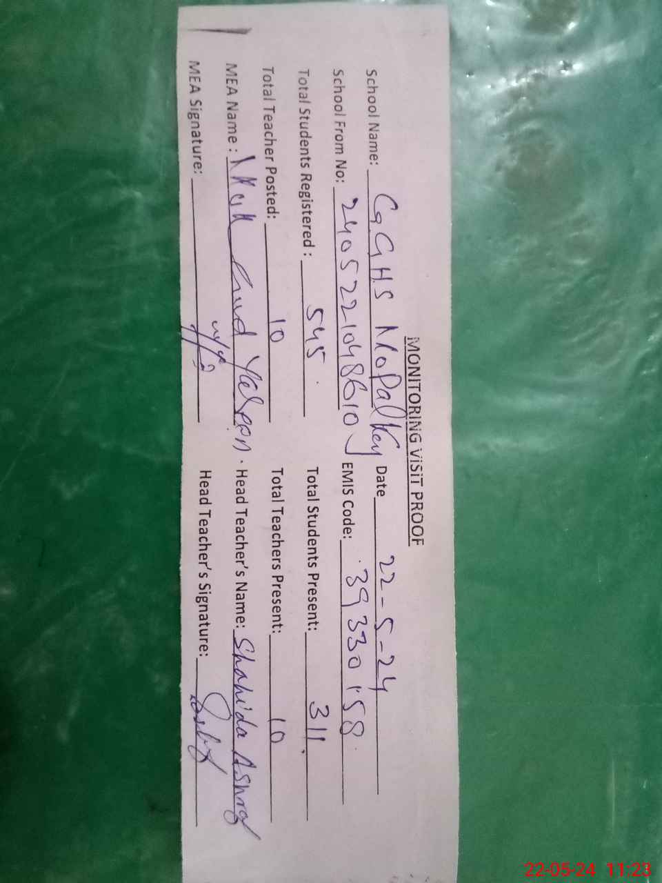 | EMIS Code: 39330158 | Name of School: GGHS MUPAL KAY | |||