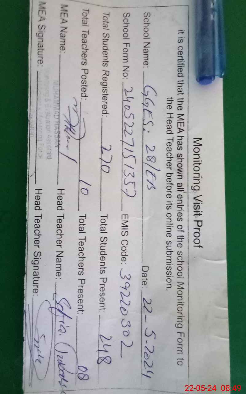 | EMIS Code: 39220302 | Name of School: GGES 28 EB | |||