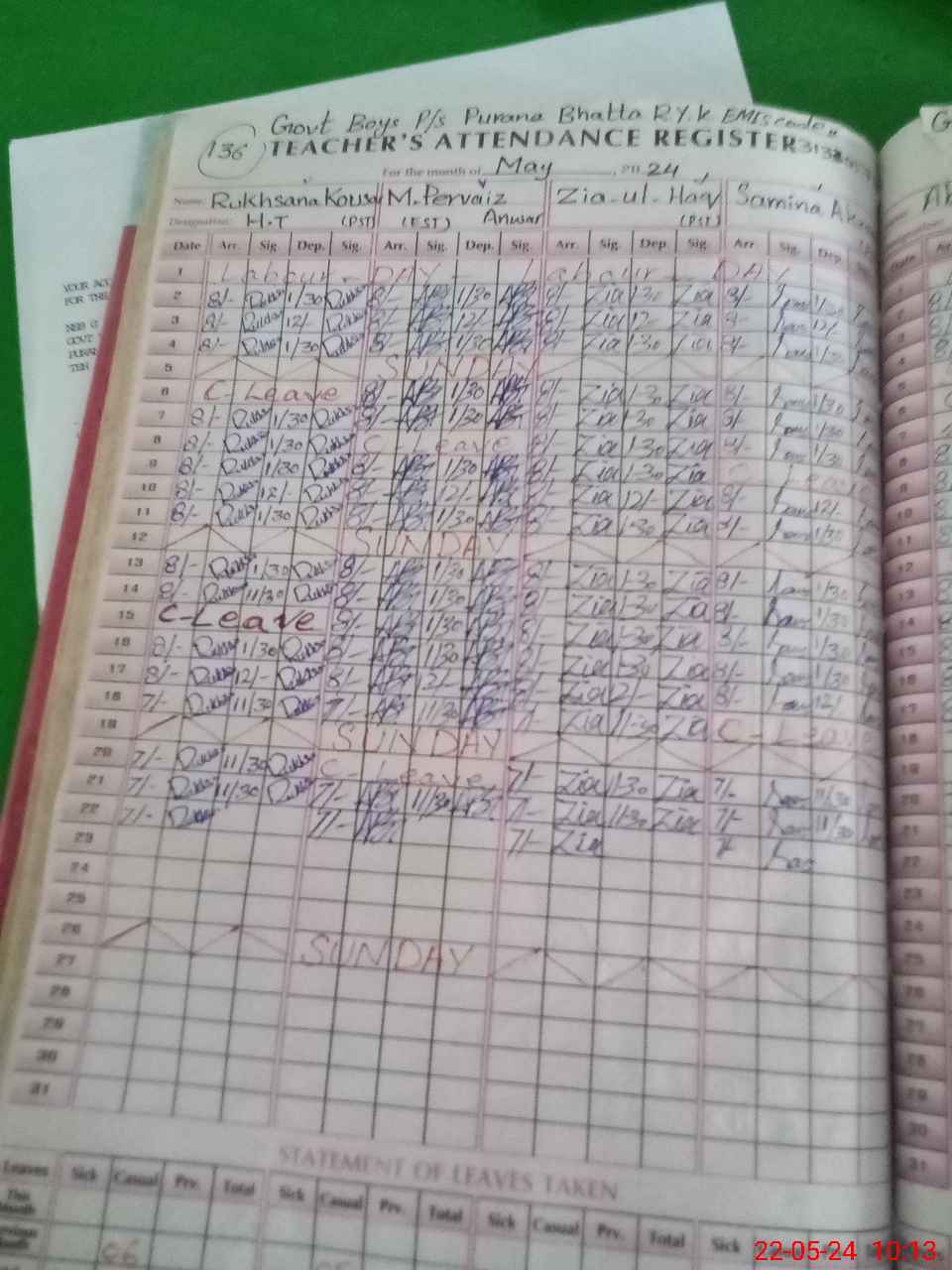 | CNIC | Full Name | Designation | R/C | Absence During Last Calender Month |