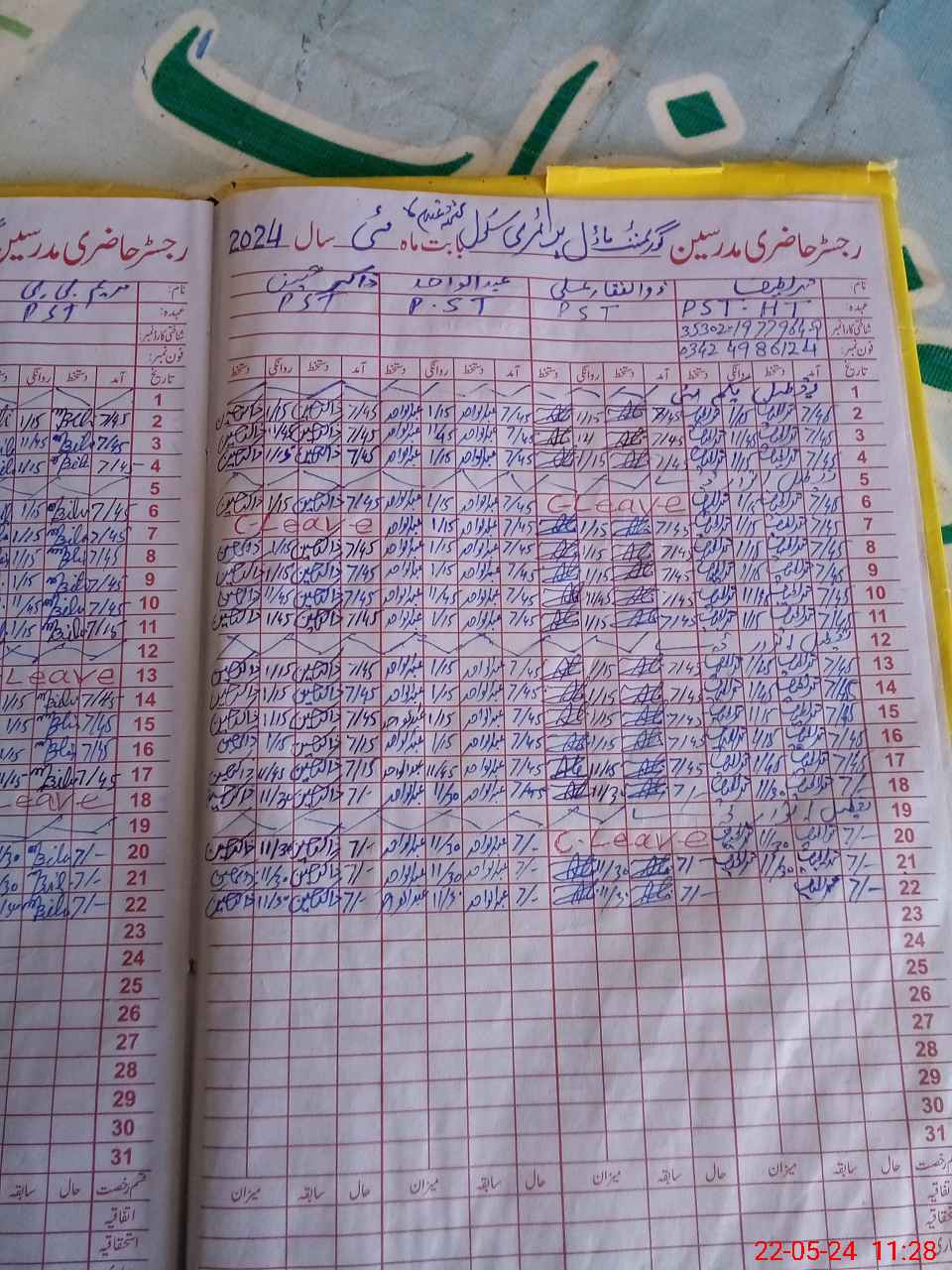 | CNIC | Full Name | Designation | R/C | Absence During Last Calender Month |