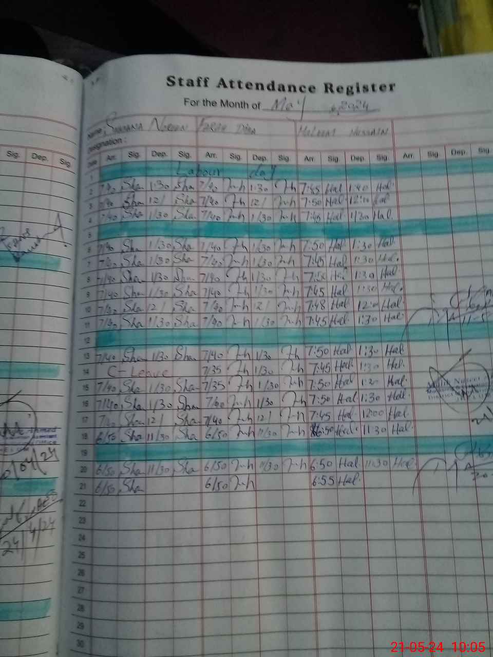 | CNIC | Full Name | Designation | R/C | Absence During Last Calender Month |