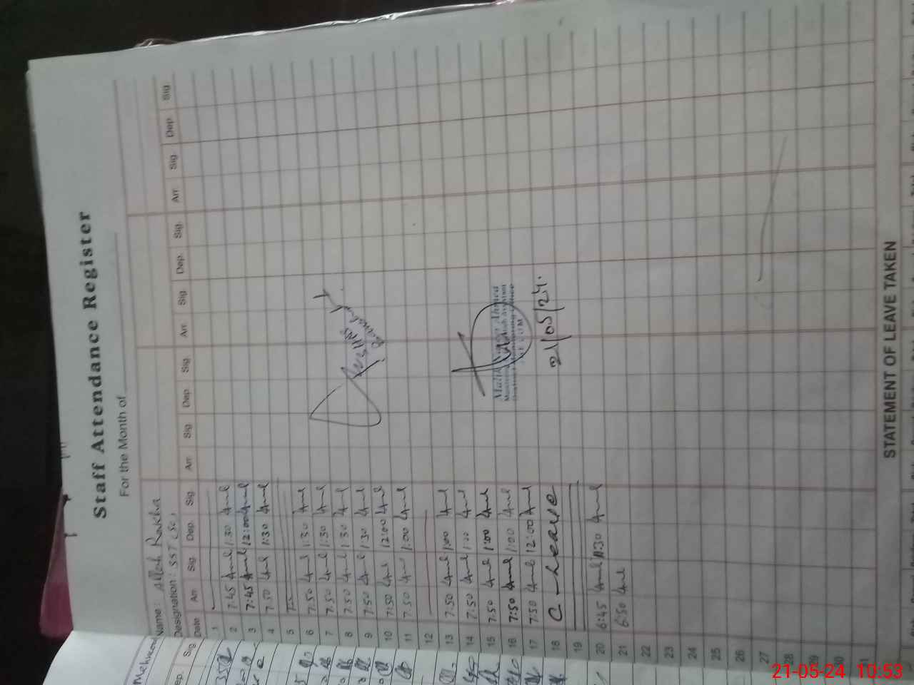 | Monitoring Date: 21-05-2024 | Start Time: 21-05-2024 10:18 AM | End Time: 21-05-2024 11:07 AM | Name of MEA: Na**** Ah**** | |