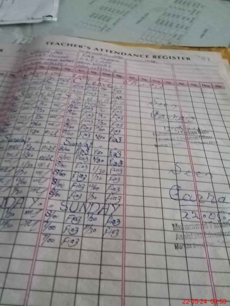 | CNIC | Full Name | Designation | R/C | Absence During Last Calender Month |