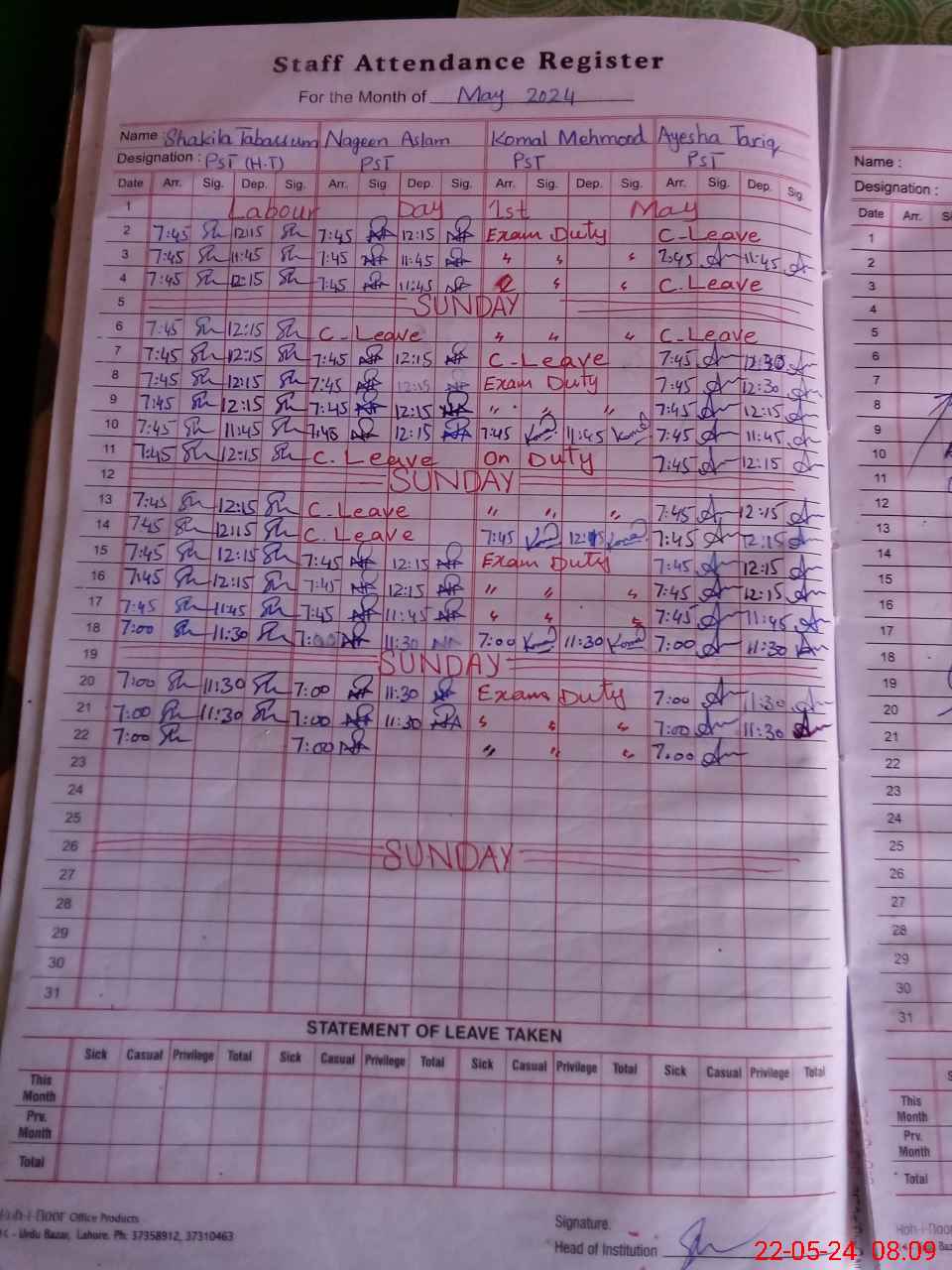 | 35**** | Ko**** Me**** | PST | Regular | 0 | 0 | 0 | 0 | 0 | 0 | 0 | 0 | 0 | Exam Duty |