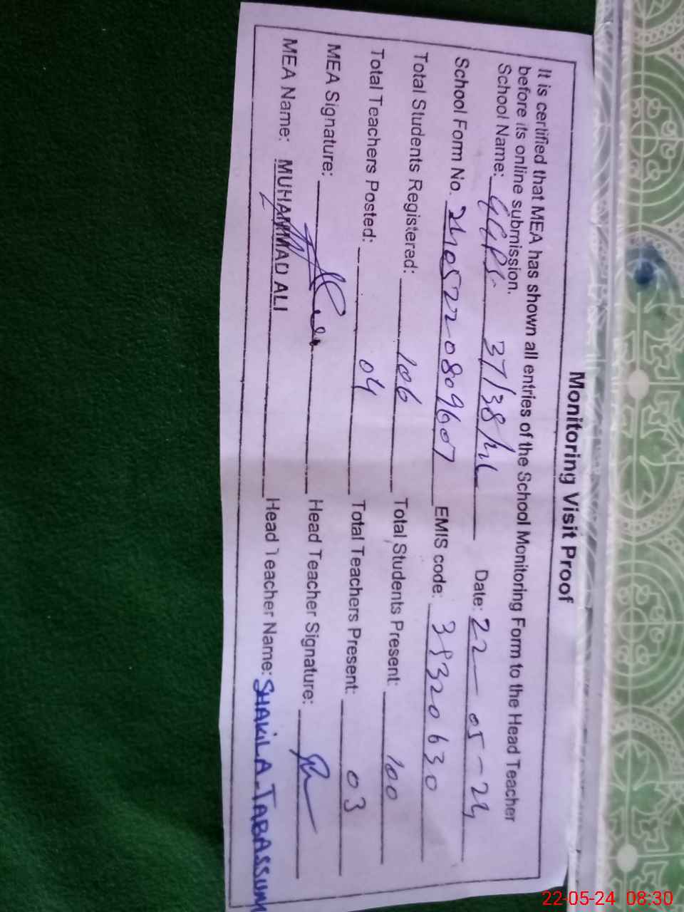 | Certified that this School was Inspected by the Undersigned MEA/DMO Today and the Information Stated Above is as Per Record. | |||||