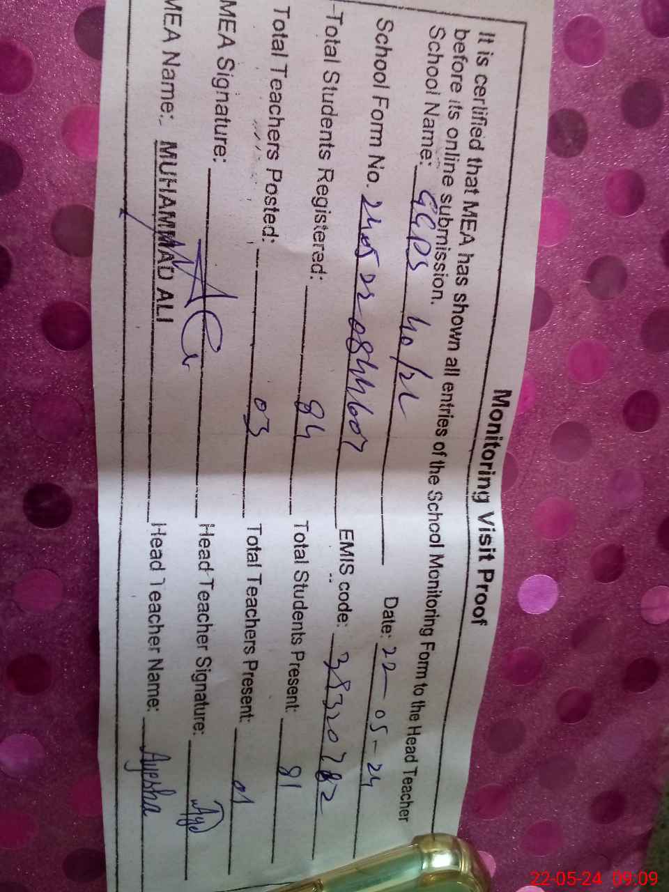 | Certified that this School was Inspected by the Undersigned MEA/DMO Today and the Information Stated Above is as Per Record. | |||||