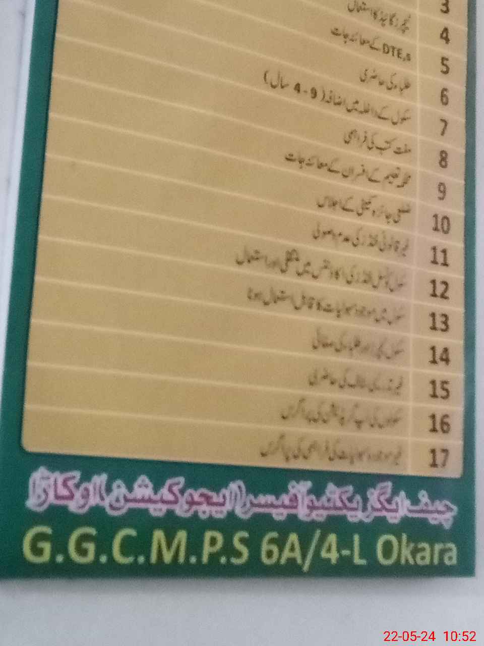 | District: OKARA | Tehsil: OKARA | Markaz: 4/4.L-FEMALE | Level: Primary | |