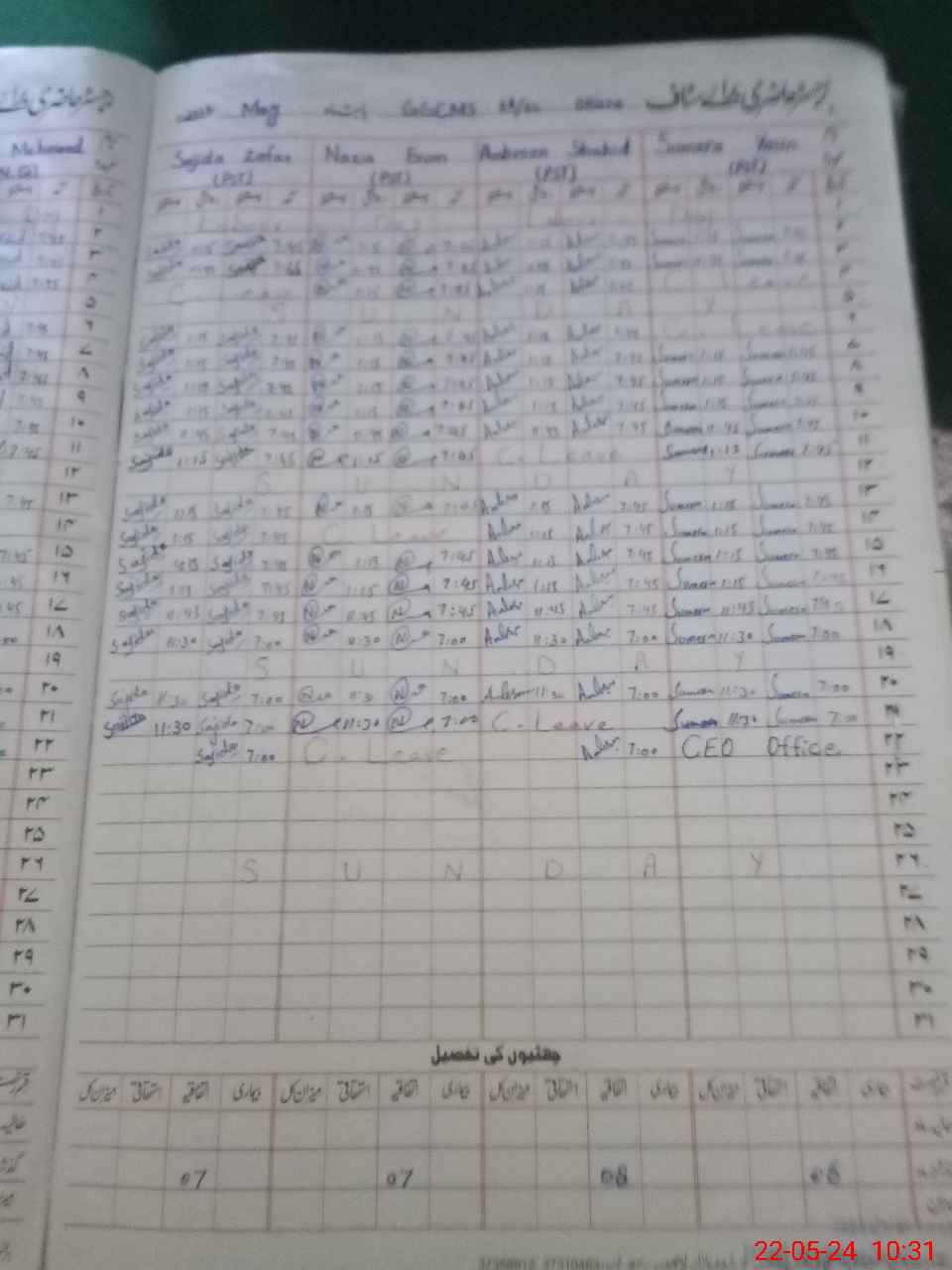 | CNIC | Full Name | Designation | R/C | Absence During Last Calender Month |