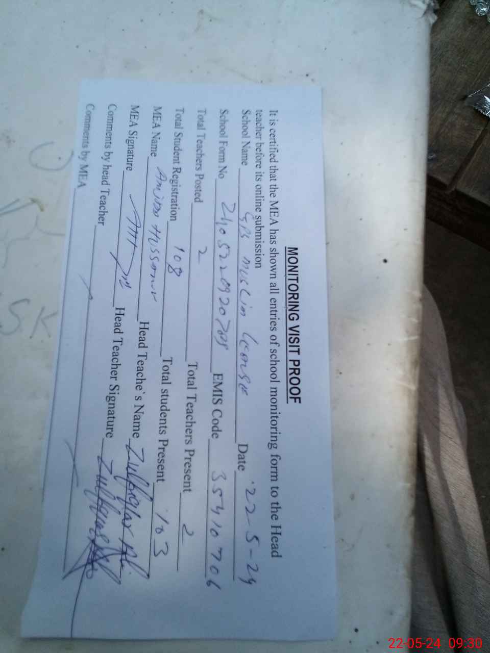 | EMIS Code: 35410706 | Name of School: GPS MUSLIM LEAGUE VILLAGE | |||