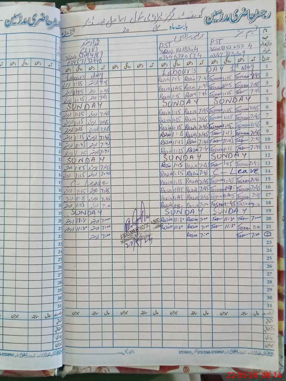 | CNIC | Full Name | Designation | R/C | Absence During Last Calender Month |