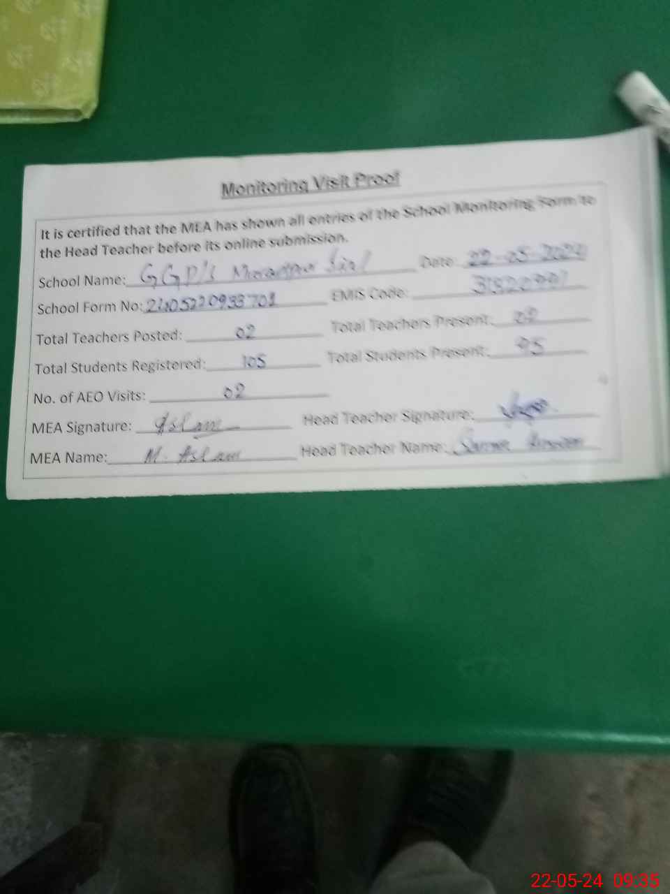 | EMIS Code: 31320991 | Name of School: GGPS MURAD PUR SIAL | |||