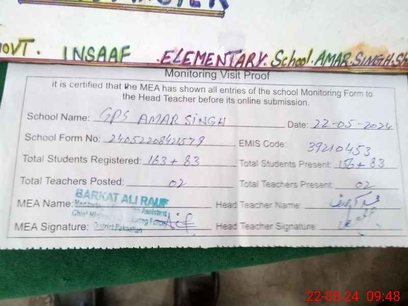 | EMIS Code: 39210453 | Name of School: GPS AMAR SINGH P/O 26/S.P PAKPATTAN | |||