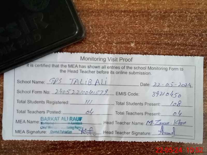 | EMIS Code: 39210450 | Name of School: GPS TALIB ALI P/O 26 S.P | |||