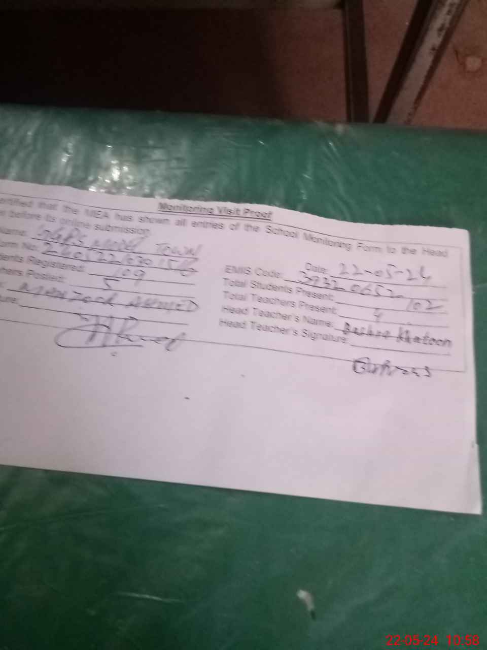 | Attendance Register | Head Teacher | MEA with School | Visit Proof |