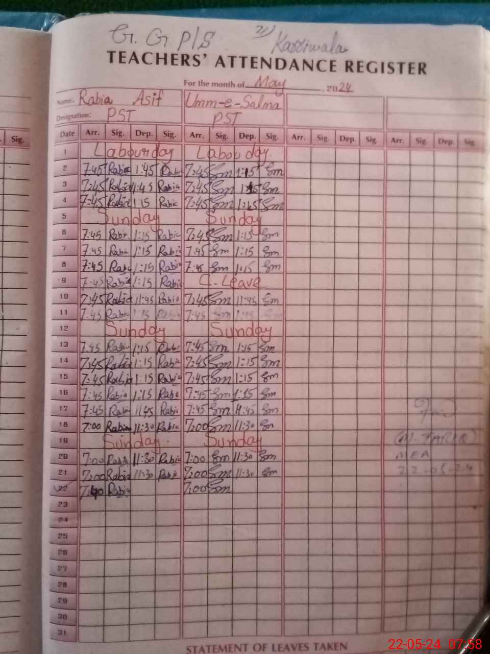 | Name: Ra**** As**** Designation: (School Headmaster's/Headmistress's) PST Phone/Cell Number: 03**** |