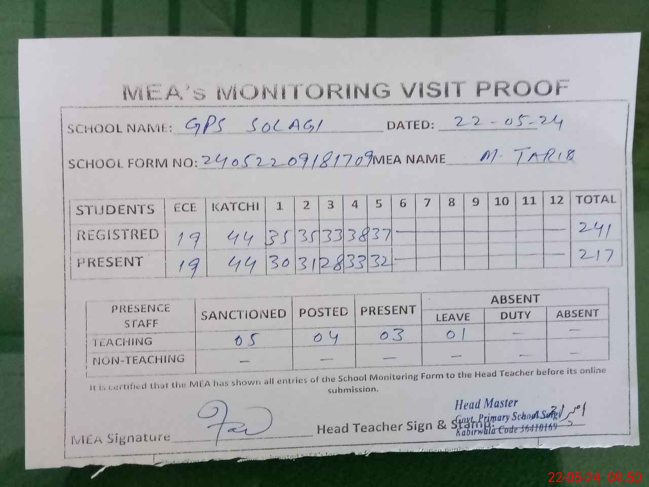 | EMIS Code: 36410169 | Name of School: GPS SOLGI, P/O JAWIND SING WALA, KABIRWALA | |||