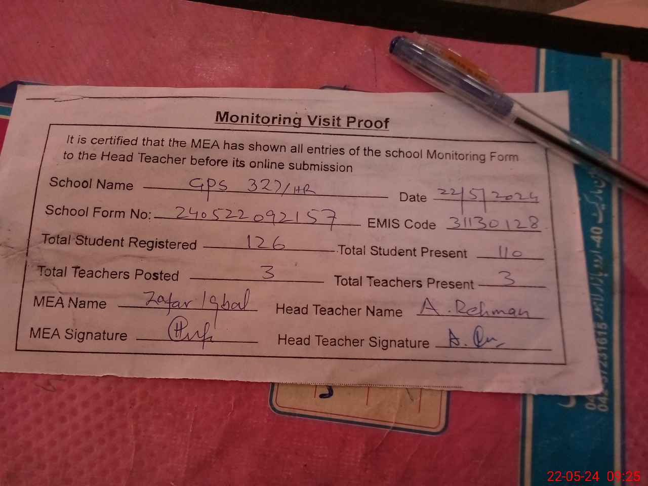 | EMIS Code: 31130128 | Name of School: GPS CHAK NO 327/HR | |||