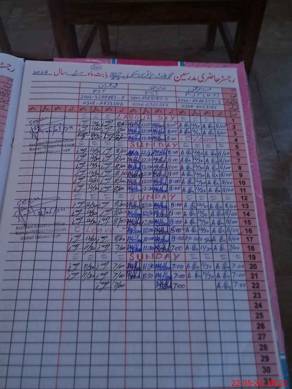 | Name: Ab**** Re**** Designation: (School Headmaster's/Headmistress's) PST Phone/Cell Number: 03**** |