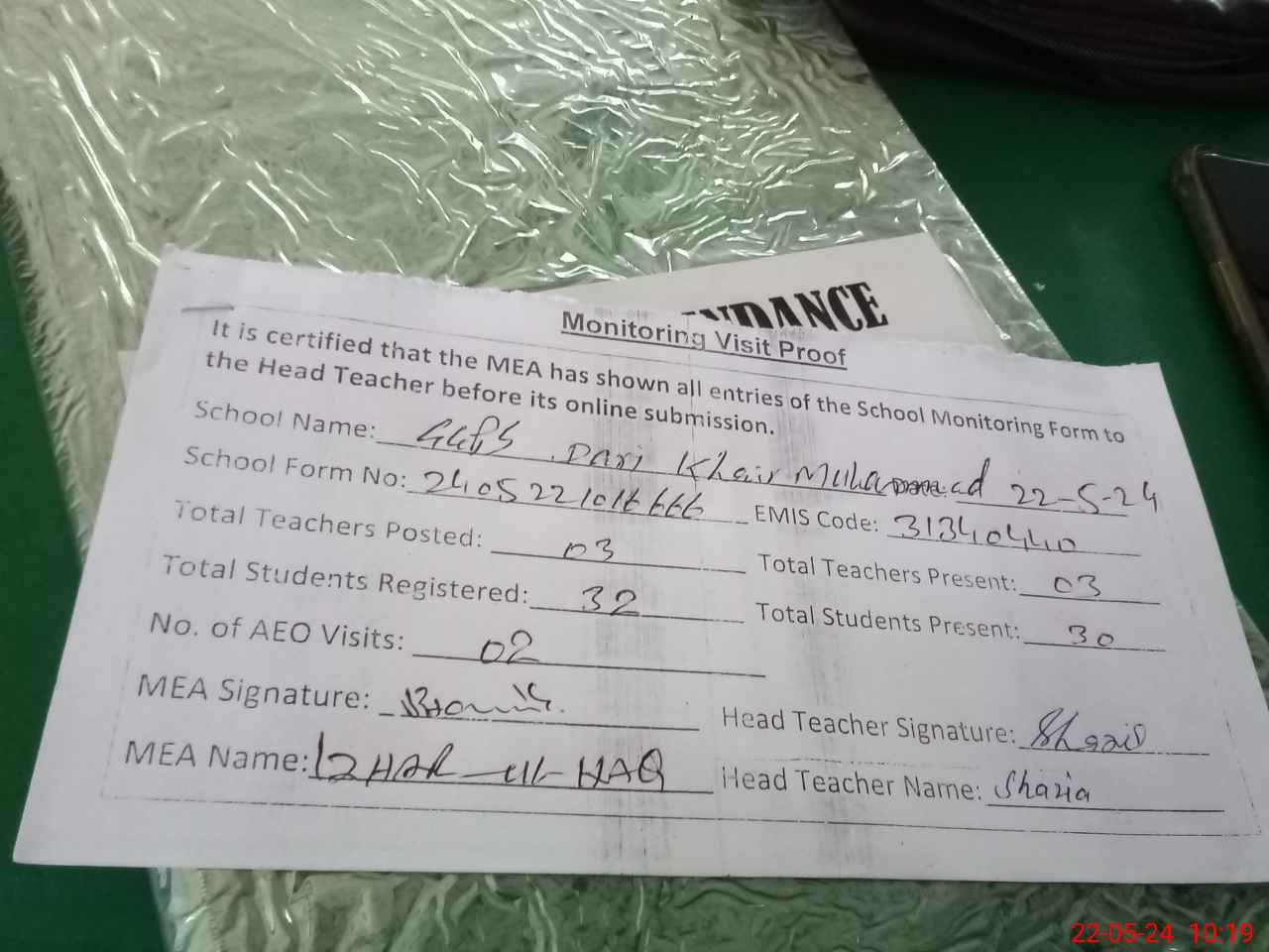 | EMIS Code: 31340440 | Name of School: GGPS DARI KHAIR MUHAMMAD | |||