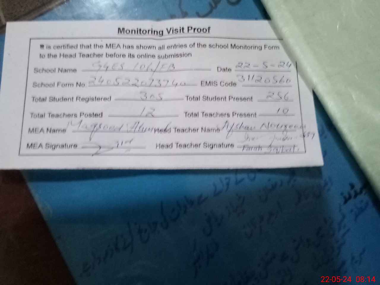 | Certified that this School was Inspected by the Undersigned MEA/DMO Today and the Information Stated Above is as Per Record. | |||||