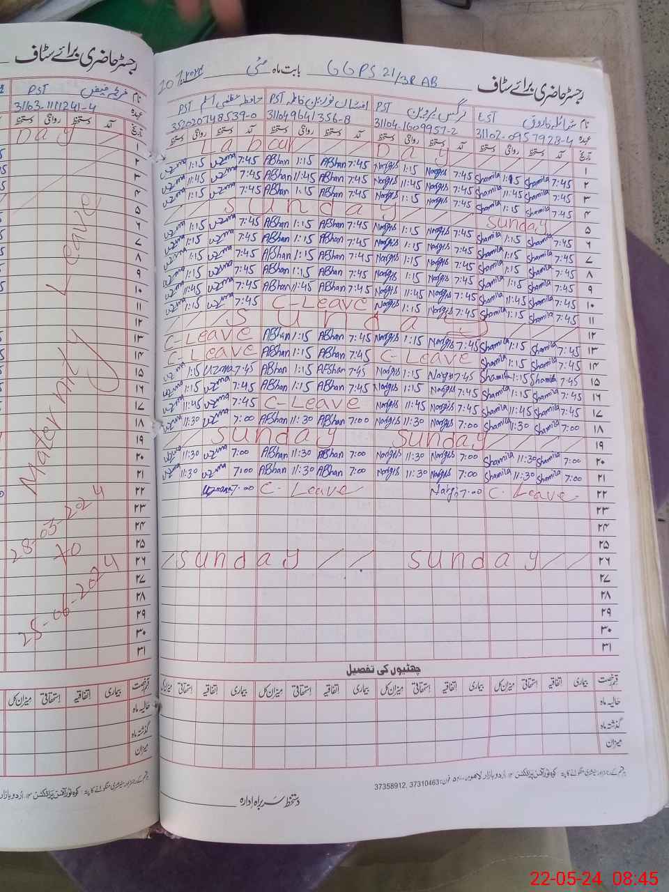 | CNIC | Full Name | Designation | R/C | Absence During Last Calender Month |