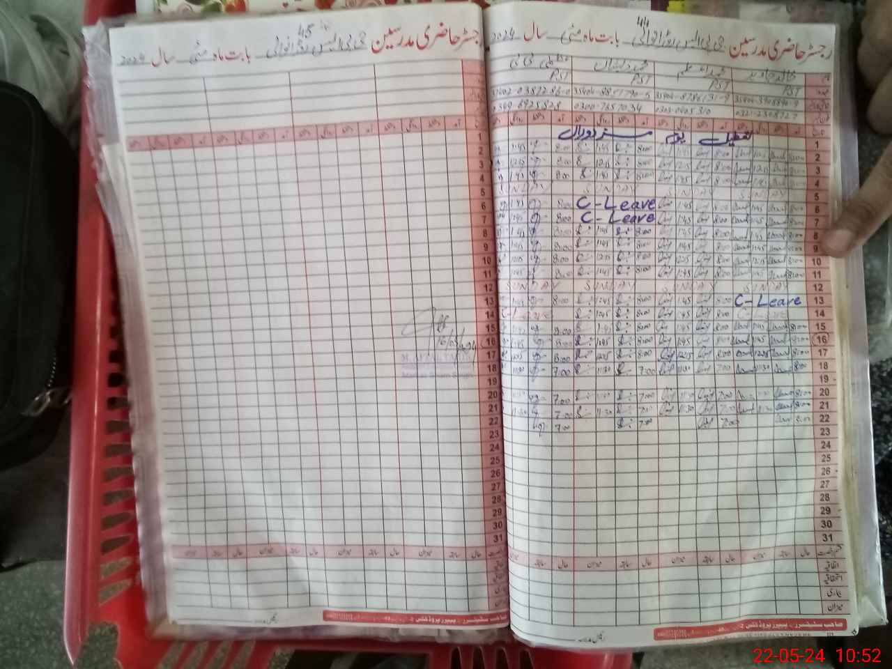 | CNIC | Full Name | Designation | R/C | Absence During Last Calender Month |